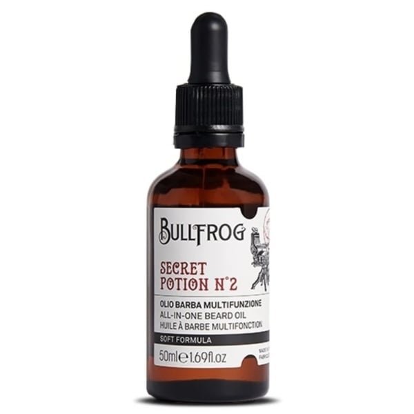 Uleiul de barba Bullfrog All-in-One Beard Oil Secret Potion N.2 este dezvoltat dupa formula secreta a celebrului lant de frizerii din Milano, ideal pentru a hrani si hidrata barbile mai lungi.