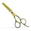Aceasta Foarfeca de filat – Mikashi Shogun’s – Blue Gold – 5.5 inch este alegerea perfecta pentru profesionistii din domeniul frizeriei si al coaforului. Lamele sunt realizate din otel inoxidabil japonez de calitate, proiectate sa ofere o taiere fina si uniforma, fara a deteriora firul de par. Designul cu o baza ingusta contribuie la o distributie echilibrata a greutatii, oferind un control excelent in timpul lucrului.