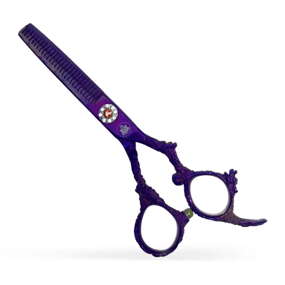 Aceasta Foarfeca de filat – Mikashi Shogun’s – Purple Dragon – 5.5 inch este alegerea perfecta pentru profesionistii din domeniul frizeriei si al coaforului. Lamele sunt realizate din otel inoxidabil japonez de calitate, proiectate sa ofere o taiere fina si uniforma, fara a deteriora firul de par. Designul cu o baza ingusta contribuie la o distributie echilibrata a greutatii, oferind un control excelent in timpul lucrului.