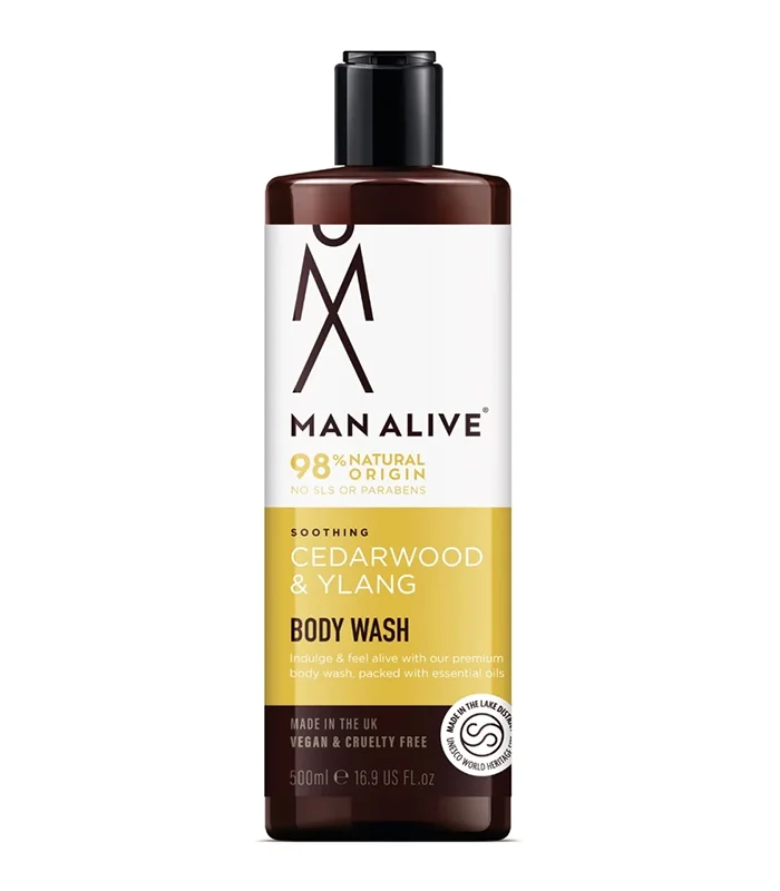 Reda prospetimea pielii tale cu Gelul de dus Man Alive Cedarwood & Ylang 500ml, special conceput pentru barbatii care apreciaza produsele naturale si parfumurile rafinate. Cu o formula bazata pe 98% ingrediente de origine naturala, acest gel de dus curata delicat, oferind in acelasi timp hidratare si confort chiar si pentru pielea sensibila.
