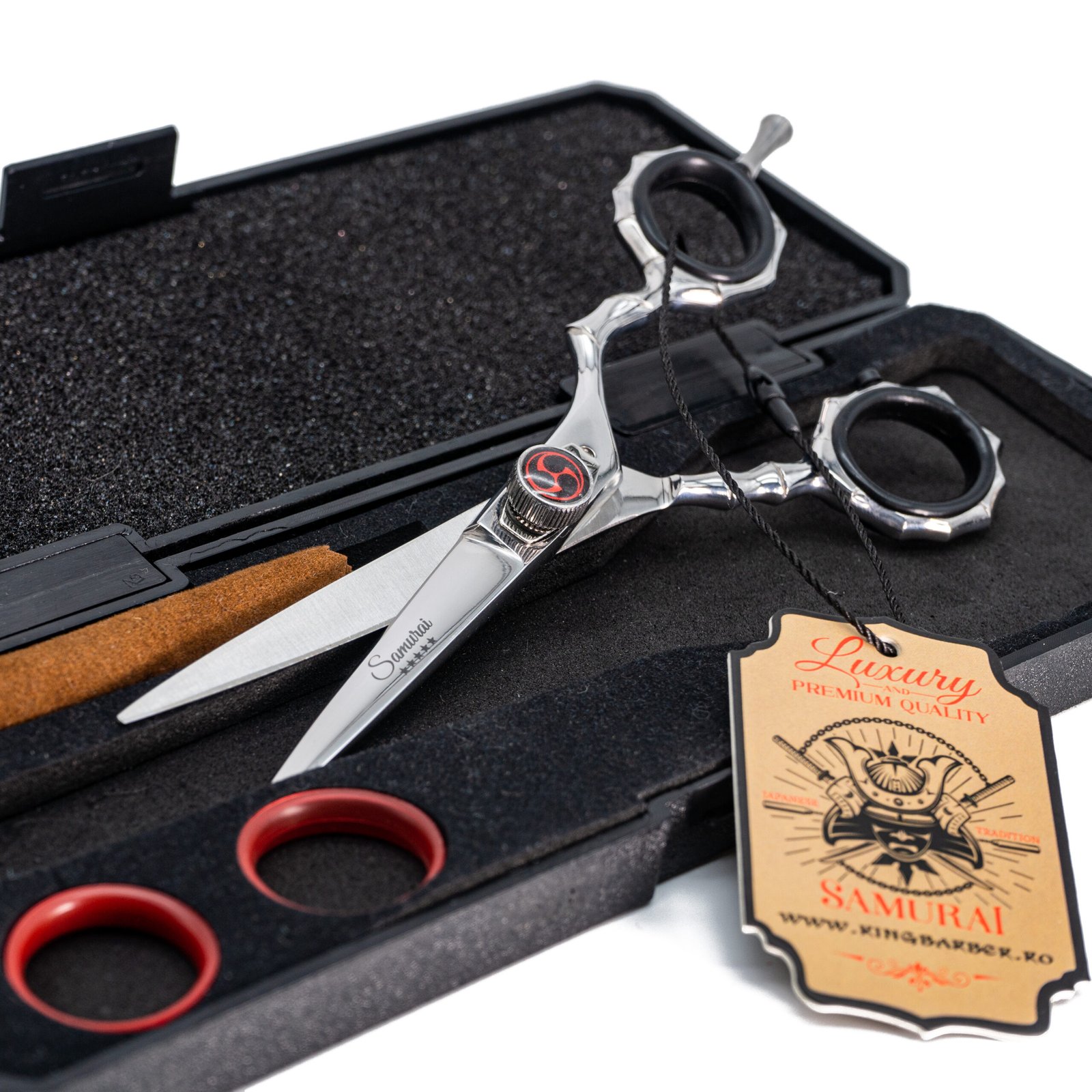 Zona corporala Par Tip produs Foarfeca de tuns Tip Profesional Utilizare Mana stanga Material Otel Lungime foarfeca 6.5 inch Culoare Argintiu Brand Samurai